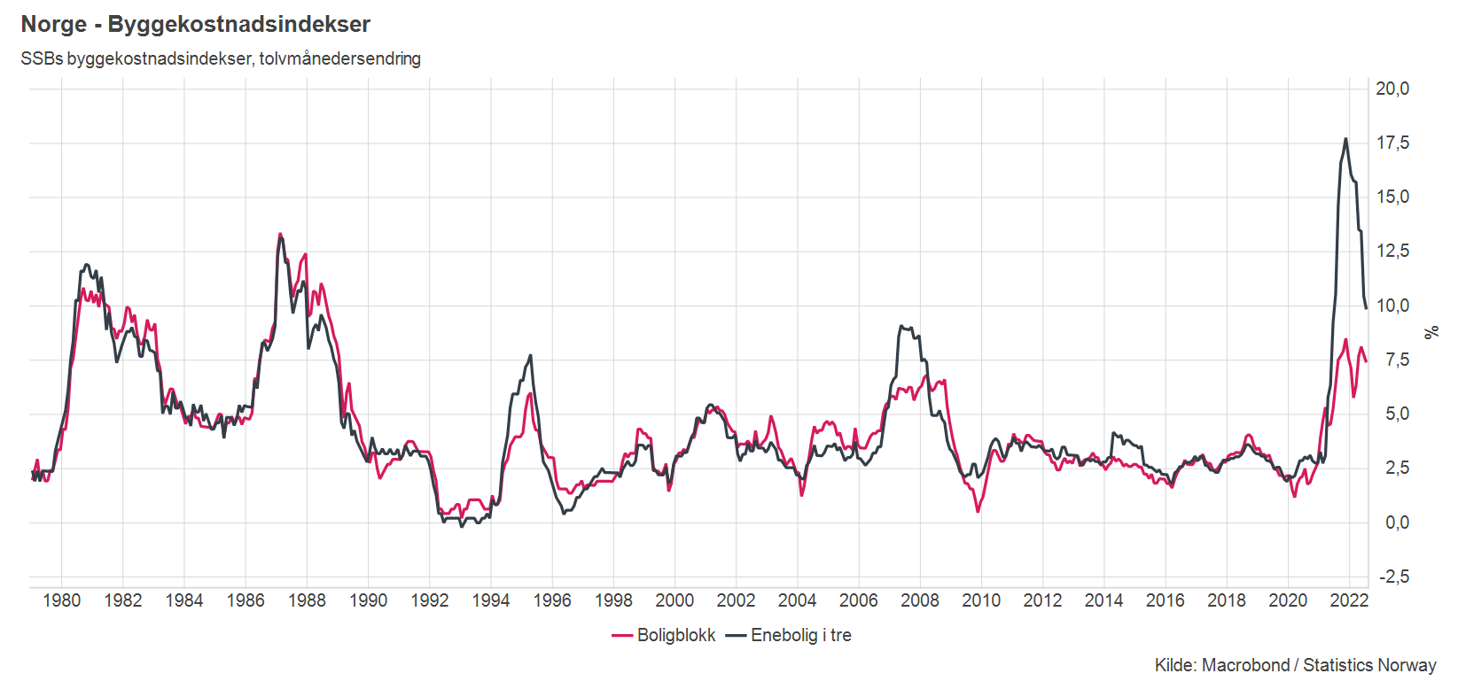 Det er økte materialkostnader som står bak mesteparten av byggekostnadsveksten de siste to årene. Høyere råvarepriser, dyrere energi og forstyrrelser i internasjonal handel har bidratt til dette, men prisøkningene skyldes ikke tilbudssideforhold alene. Økningen i materialkostnadene helt i begynnelsen av pandemien ble trigget av svært stimulerende penge- og finanspolitikk som ga et oppsving i etterspørselen. Husholdninger verden over ble tvunget til å vri forbruk over fra tjenester til varer, og med mer tid tilbrakt i hjemmet tok oppussingen helt av. Samtidig førte ekspansiv pengepolitikk til at boligprisene steg, og boligbyggingen tok seg opp i mange land. Etterspørselen etter byggevarer økte både fra forbrukere og entreprenører, og tilbudssiden klarte ikke å respondere – tvert imot gikk produksjonen ned på grunn av nedstengninger og høy usikkerhet tidlig i pandemien.